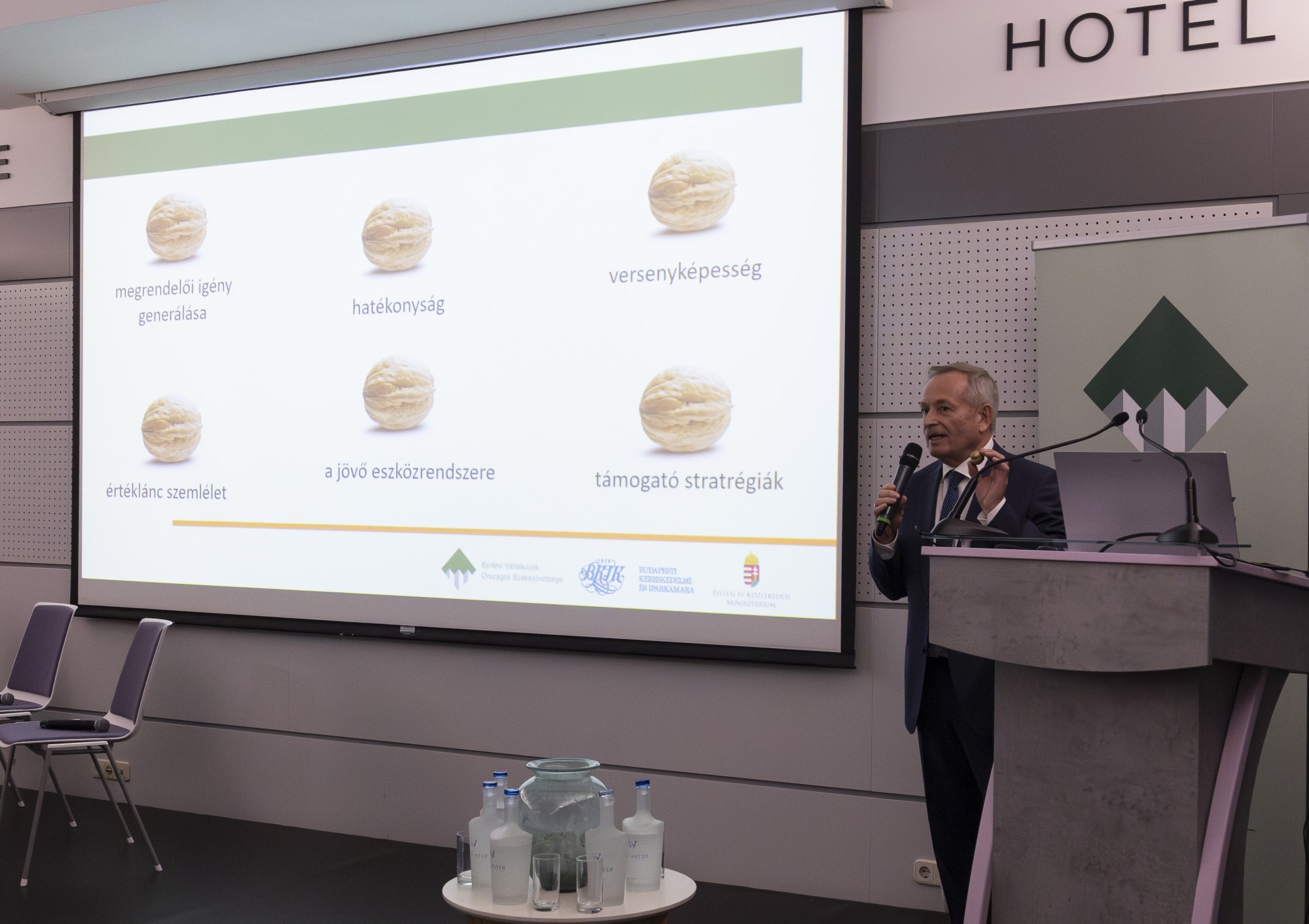 Koji László ÉVOSZ elnök Új világ küszöbén az építőipar című megnyitó beszédéből, Lázár János építési és közlekedési miniszter beszédéből, valamint Tóth Attila, a CÉH zRt. elnöke, az ÉVOSZ Jövőkép Stratégiai Munkabizottság elnökének Így gondolkodik a világ: az Európai Unió szakpolitikai irányai, konferenciák üzenete című beszédéből Bene János állította össze a hanganyagot.