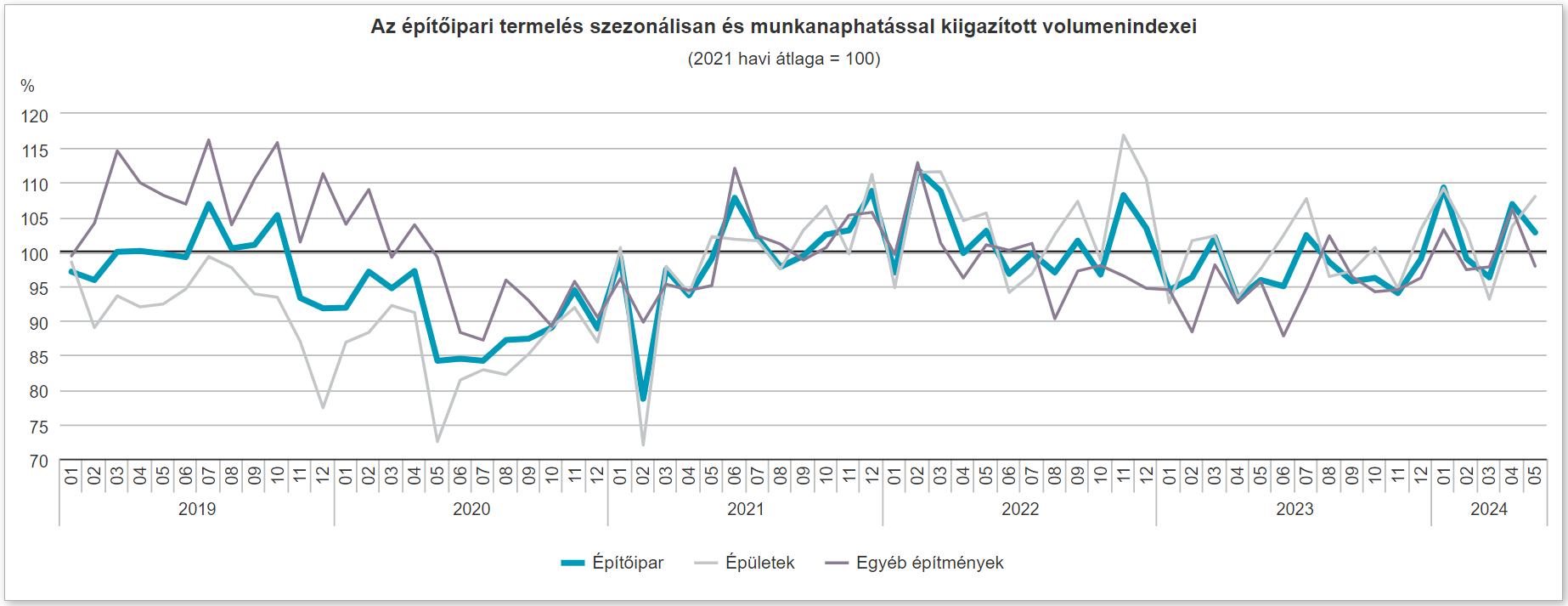 2024 májusában az építőipari termelés volumene a nyers adatok szerint 7,2%-kal meghaladta az egy évvel korábbit. Az építményfőcsoportok közül az...