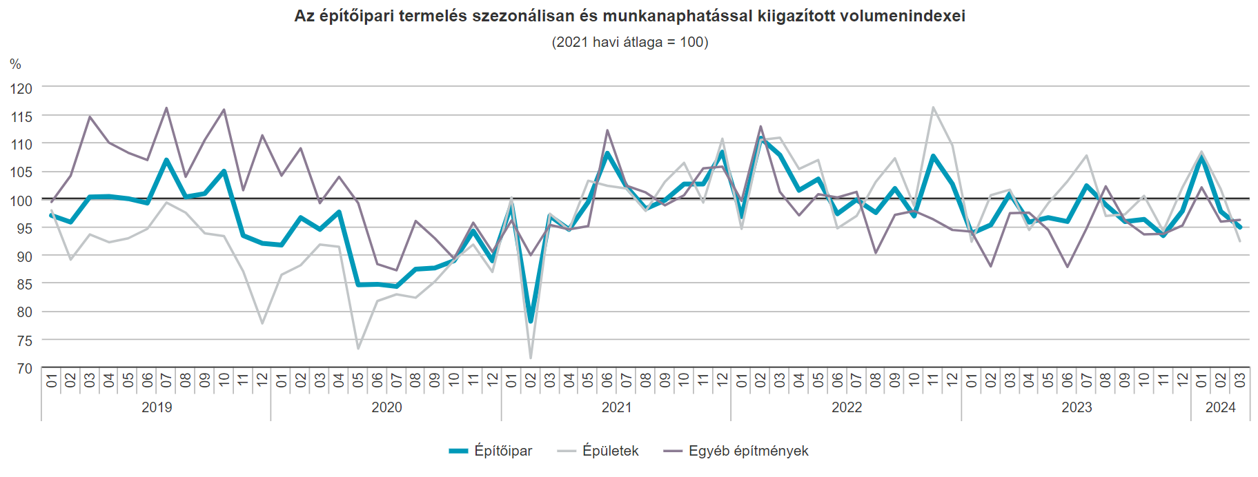 2024 márciusában az építőipari termelés volumene a nyers adatok szerint 6,3%-kal elmaradt az egy évvel korábbitól. Az építményfőcsoportok közül az...