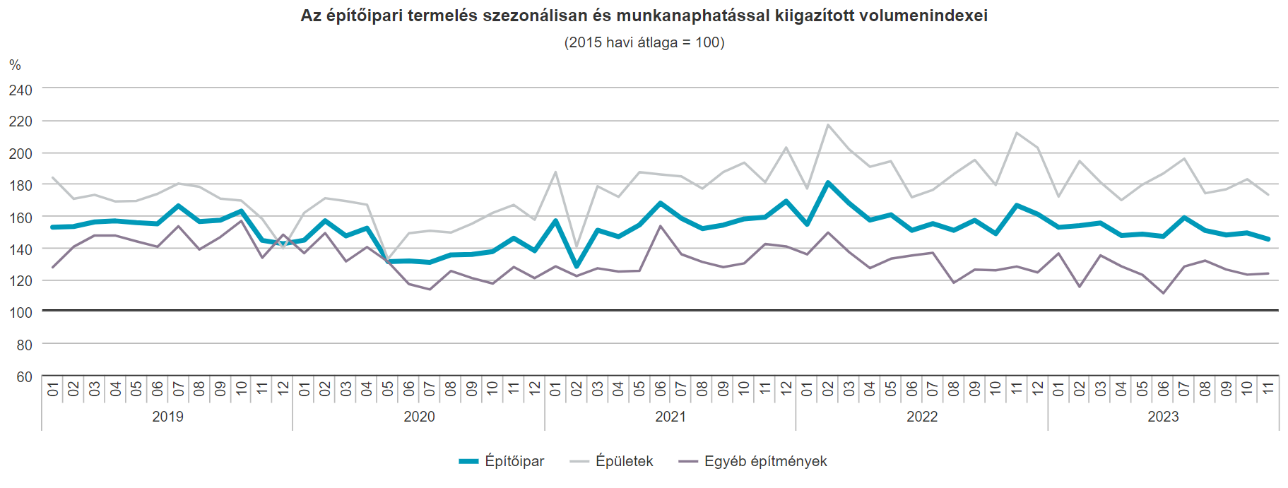 2023 novemberében az építőipari termelés volumene a nyers adatok szerint 12,8%-kal elmaradt az egy évvel korábbitól. Az építményfőcsoportok közül az...