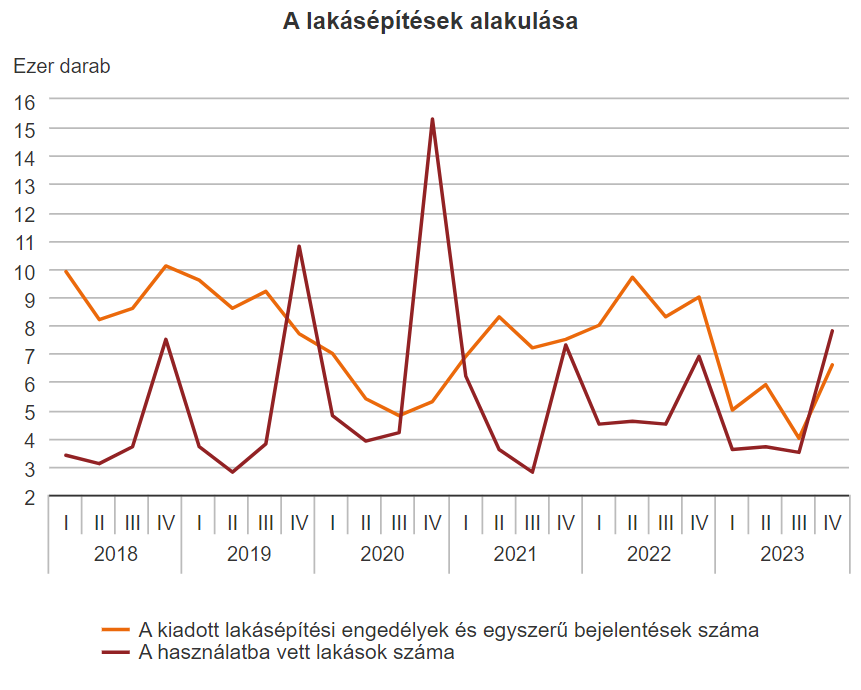 2023-ban 18 647 új lakás épült, 9,2%-kal kevesebb, mint egy évvel korábban. A kiadott építési engedélyek és egyszerű bejelentések alapján építendő...