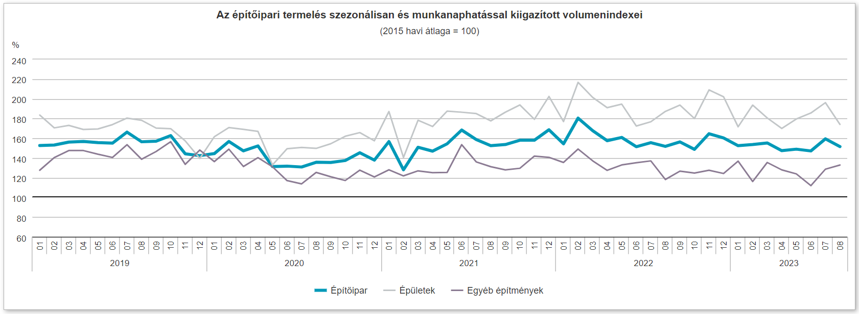 2023 augusztusában az építőipari termelés volumene a nyers adatok szerint 0,5%-kal elmaradt az egy évvel korábbitól. Az építményfőcsoportok közül az...