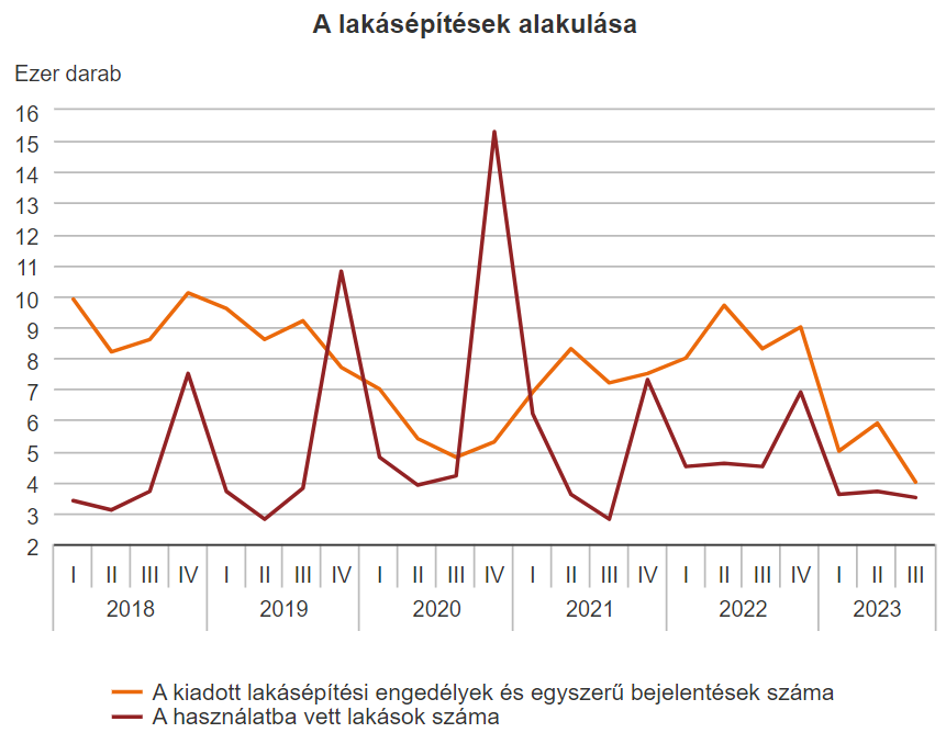 2023 I–III. negyedévében 10 808 új lakás épült, 21%-kal kevesebb az egy évvel korábbinál. A kiadott építési engedélyek és egyszerű bejelentések...